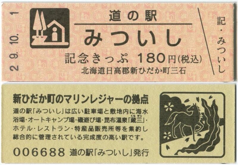 道の駅記念切符 平成29年(2017年)10月1日 購入